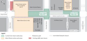 Albert Street pedestrianised corridor at the northern station entrance (Lot 3) near Elizabeth Street.